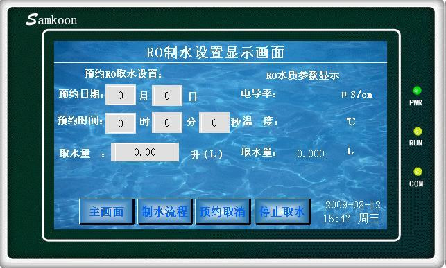 1、基于ARM7系列单片机和PLC触摸屏控制程序,人机界面的高端制水设备,并在制水过程中图形显示制水流程。