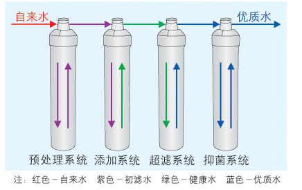 v 源水在≤200ppm,初级“四级净化装置”具有去除:颗粒物质、铁、锰、余氯、钙、镁离子及吸附有机物、异味等);